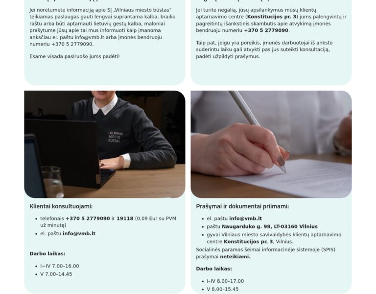 Wir haben eine klare, barrierefreie Website für Vilnius City Housing gestaltet und entwickelt, damit Einwohner Informationen und wohnungsbezogene Dienstleistungen leichter finden und nutzen können. Die Plattform unterstützt den öffentlichen Auftrag der Einrichtung, indem sie wichtige Inhalte verständlich, inklusiv und einfach bedienbar macht.
