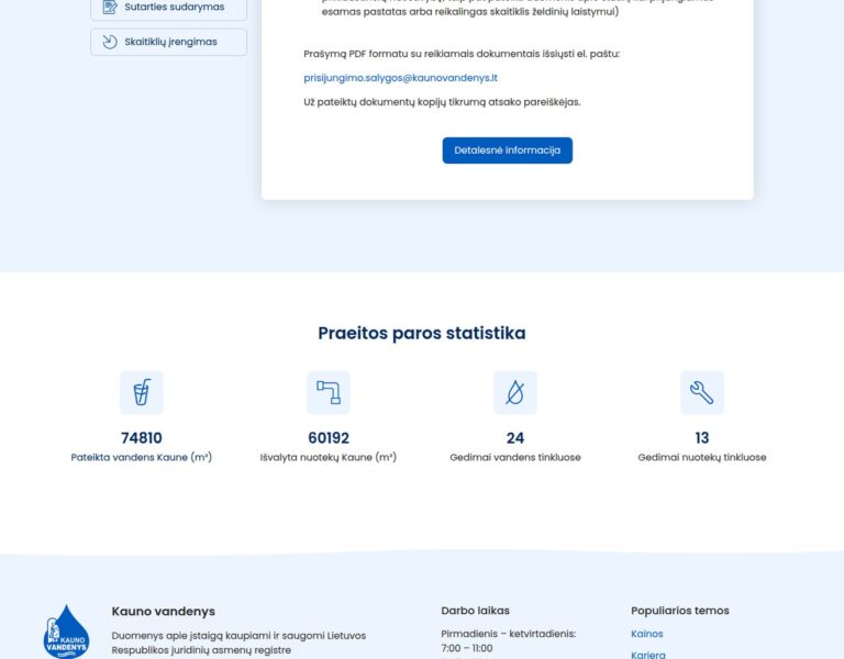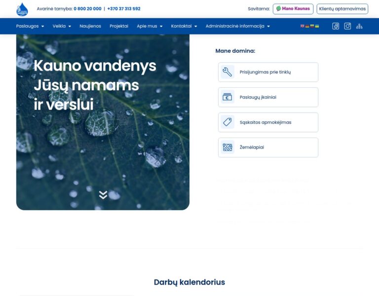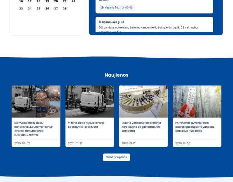 Wir haben für AB Kauno vandenys eine öffentlich zugängliche Website konzipiert und entwickelt, damit wichtige Informationen zu den Dienstleistungen leichter gefunden und genutzt werden können. Die Plattform unterstützt Bürgerinnen und Bürger sowie Unternehmen mit einem klaren Zugang zu Informationen rund um Wasserversorgung, Abwasserentsorgung und Unternehmensmeldungen.