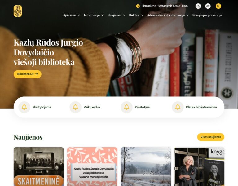 Wir haben für die Kazlų Rūda Public Library eine moderne Website entwickelt, damit sich Services, Veranstaltungen und Materialien online leichter finden lassen. Das Projekt stärkt die Rolle der Bibliothek als kulturelles und bildendes Zentrum und bietet den Bürgerinnen und Bürgern ein klares, inklusives digitales Angebot.