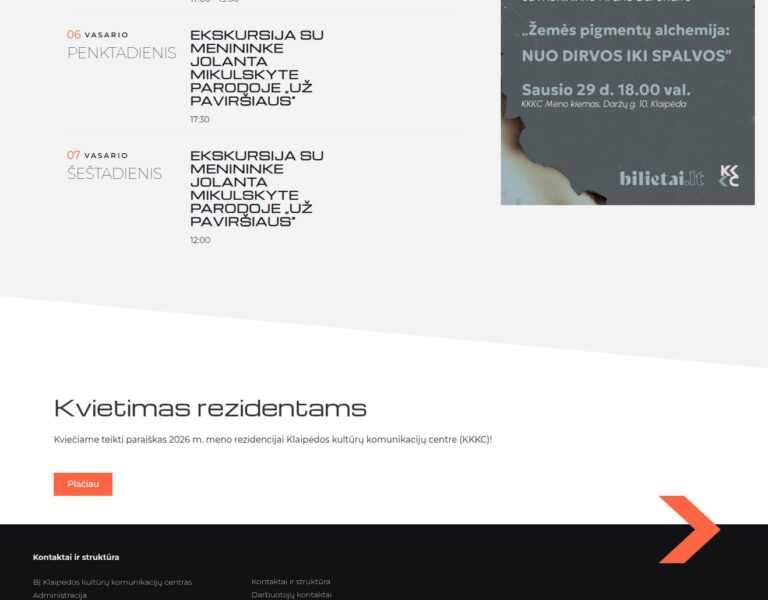 Wir haben für das Klaipėda Cultural Communication Centre eine Website erstellt, die Ausstellungen, Veranstaltungen und kulturelle Initiativen in einem klaren digitalen Auftritt bündelt. Die Plattform hilft der Einrichtung, ihr Programm besser zu präsentieren, und erleichtert es der lokalen Öffentlichkeit sowie Besucherinnen und Besuchern, am Kulturleben in Klaipėda teilzunehmen.