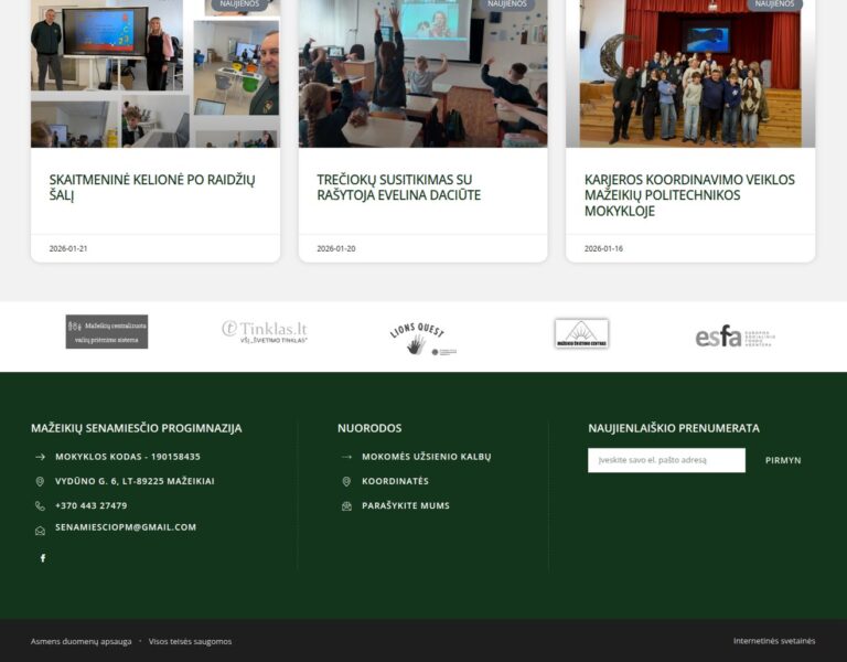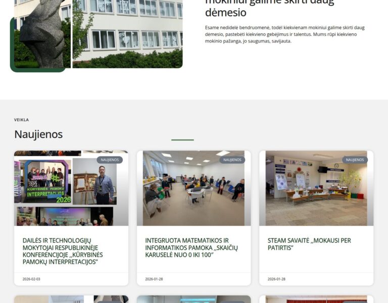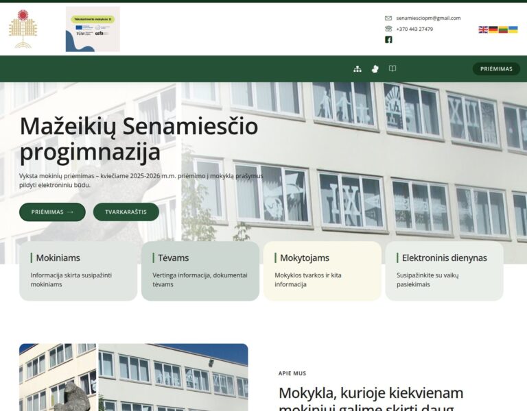 Wir haben für das Mažeikiai Old Town Progymnasium eine zeitgemäße Website erstellt, die die Schule für Schülerinnen und Schüler, Eltern und die breite Öffentlichkeit klar präsentiert. Die neue Plattform unterstützt die tägliche Kommunikation und spiegelt den zukunftsorientierten Bildungsansatz der Schule wider.