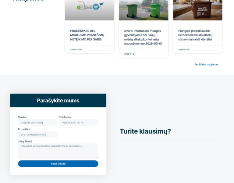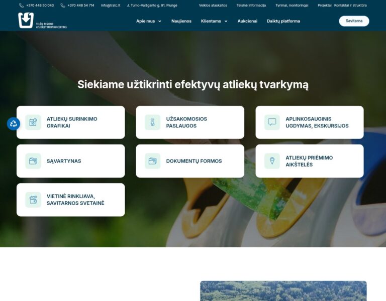 Wir haben für das Telšiai Region Waste Management Centre eine moderne Website konzipiert und entwickelt, damit wichtige Informationen zur Abfallwirtschaft leichter zugänglich sind. Die neue Plattform hilft Bürgerinnen und Bürgern sowie Organisationen