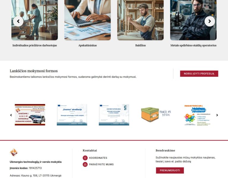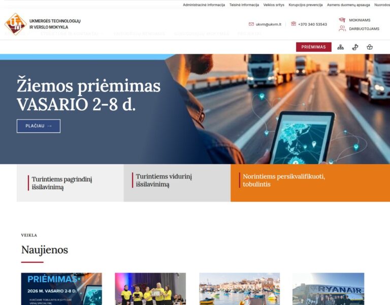 Wir haben für die Ukmergė Technology and Business School eine moderne Website erstellt, die Studienprogramme, das Schulleben und öffentliche Informationen klar und barrierearm darstellt. Die Plattform hilft angehenden Schülern, Eltern und lokalen Partnern schnell zu verstehen, was die Schule anbietet und wie sie eine praxisorientierte Ausbildung unterstützt.