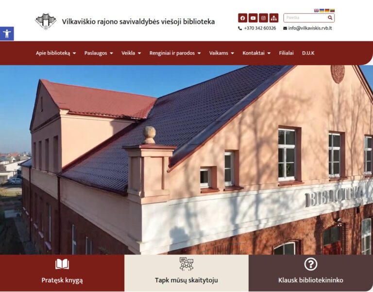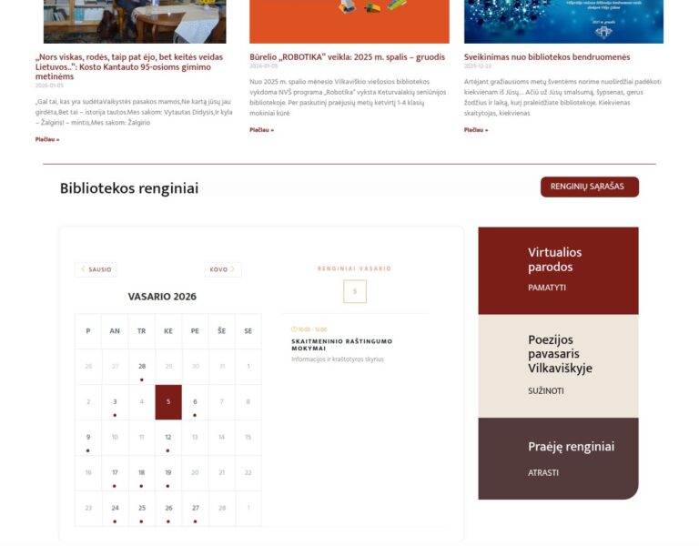 Wir haben für die Vilkaviškis District Public Library eine neue Website gestaltet und entwickelt, damit Informationen, Services und kulturelle Angebote online leichter zugänglich sind. Die Plattform bietet den Einwohnerinnen und Einwohnern einen klareren, nutzerfreundlicheren Zugang zur Bibliothek und ihren Angeboten.